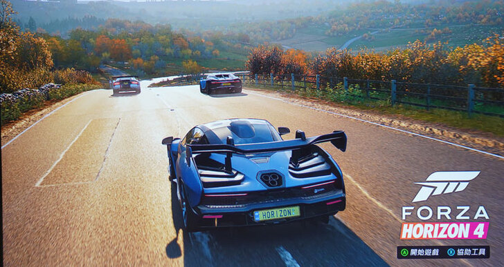 切換至另一款競速遊戲《極限競速:地平線 4》,透過 EH-TW6250 呈現出來風景如畫的場景與生動的光影讓人覺得十分暢快!