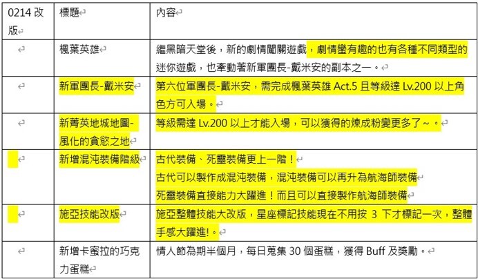 整理內容表格如下(只有把一些新的重點抓出來,其餘一些BUG及優化就交給大家自己看了