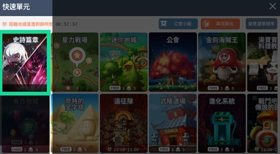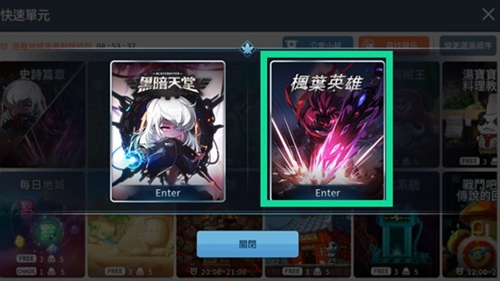 透過[快速單元]進入史詩篇章,即可遊玩楓葉英雄。