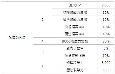 - 混沌、航海師裝備的防具有存在最大傷害。