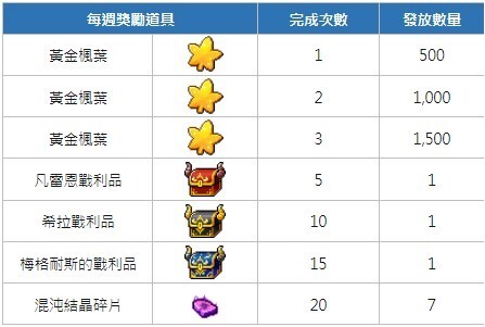 - 入場條件:完成楓葉英雄(帳號內1次)