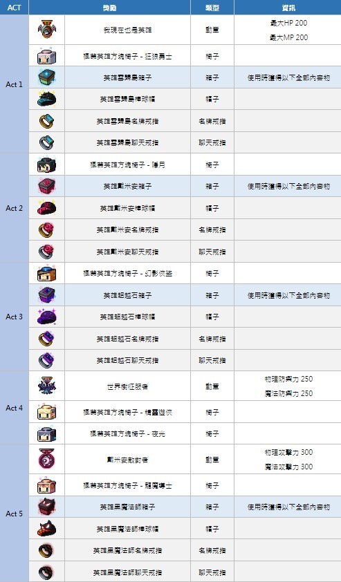 - 楓葉英雄最初Act全過關獎勵可在各個Act入場UI中確認。