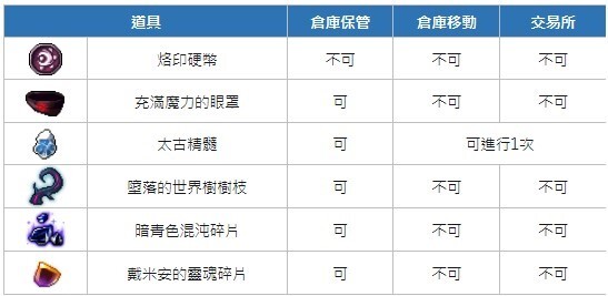 - 戴米安完成後只有掉落獲得的太古精髓道具可進行交易所登錄。