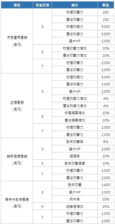 - 提升原本死靈裝備的等級能力值和追加屬性。(原本數值沒有變化,依照回真、紋章變更的數值相同。)