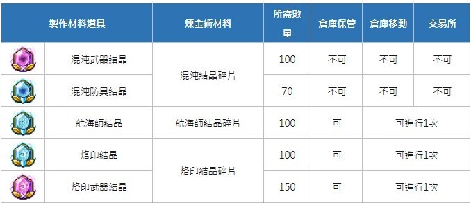 - 各結晶道具可以在煉金術中使用結晶碎片製作。