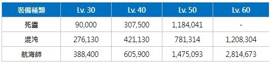- 混沌級分為混沌一般裝備&混沌航海師裝備。
