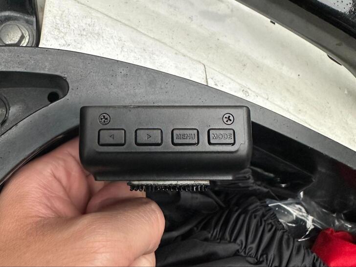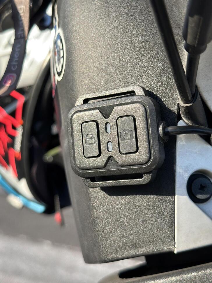 按紐分別為鎖檔鍵及拍照鍵,安裝在龍頭上,個人覺得位置很剛好,運作時,能夠看到燈光在閃爍,確保行車紀錄器有正常在運作,按鈕也是伸手就可以輕鬆觸摸到,一鍵鎖檔能在關鍵時刻保存錄影畫面,比較新奇的是這台還有截取影像功能,是我之前安裝的行車紀錄器都沒有的!