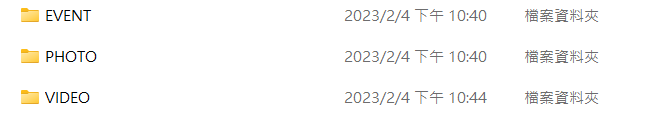 將記憶卡取出可以發現,系統會將行車紀錄器的拍攝檔案自動分類成Event、Photo、Video三個資料夾,資料夾內部也會將前後鏡頭錄製的片段再分為「F」與「R」前後兩個資料夾,能更快找到需要的檔案!