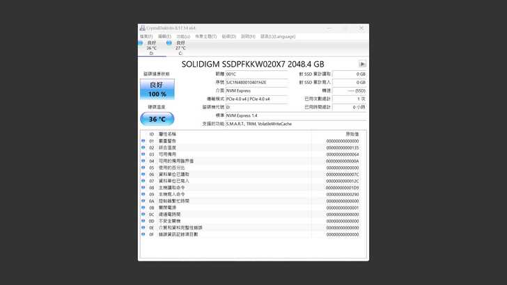 在 CrystalDiskInfo 中可以看到其在 PCIe Gen4 x4 運行。