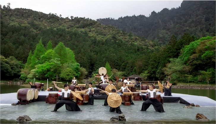 十鼓擊樂團在明池森林遊樂區,開啟嶄新聽視覺多感官體驗。(圖/力麗馬告生態園區)