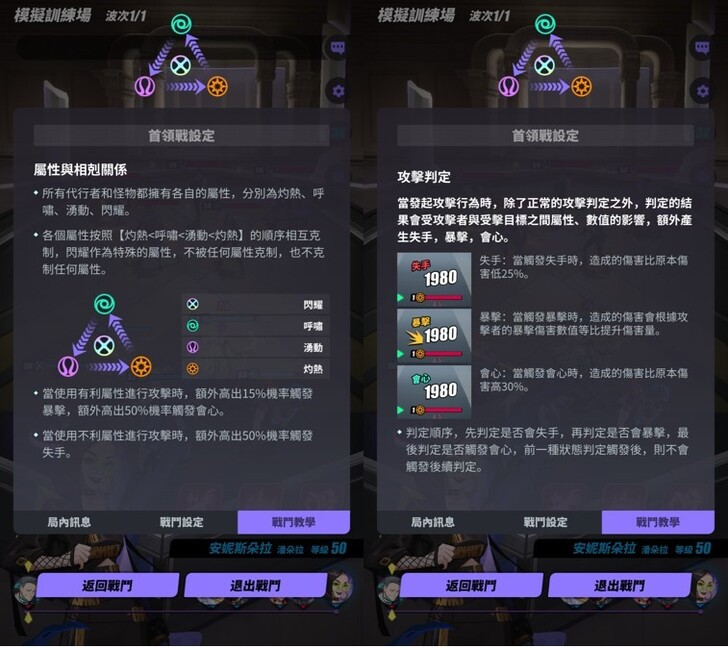 相反的,使用不利屬性攻擊,失手機率會提高50%,而失手的攻擊將減少25% 傷害。