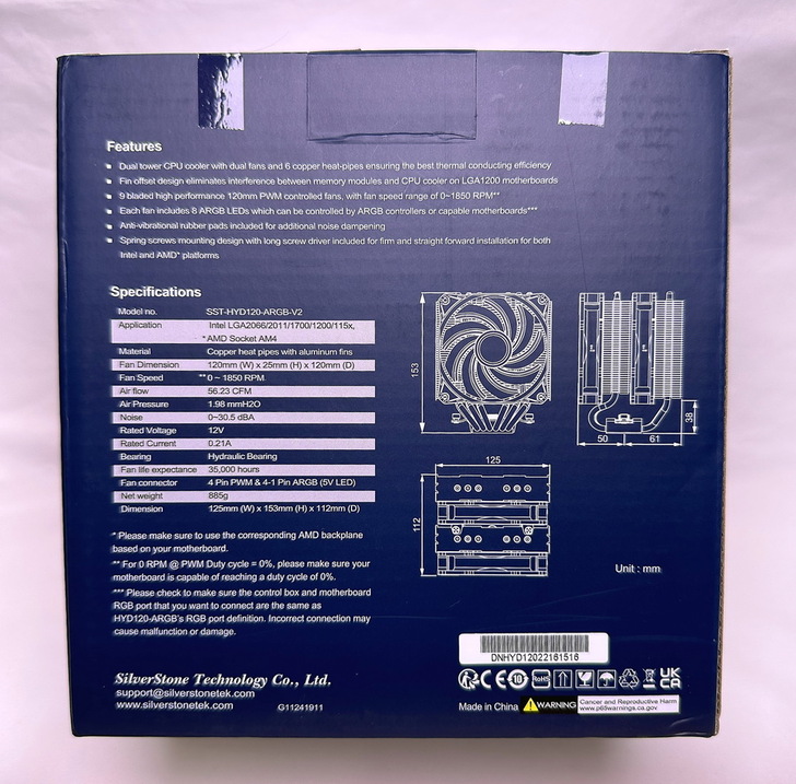 盒裝側面圖示 Hydrogon D120 ARGB 重點特色