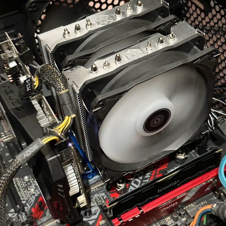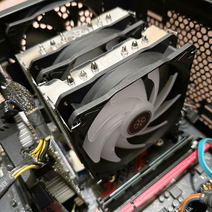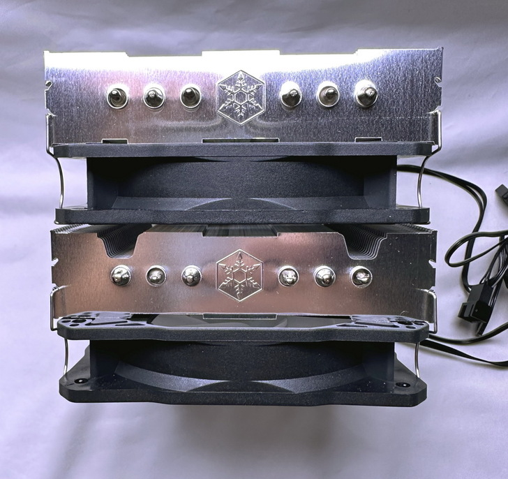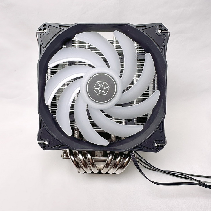 Hydrogon D120 ARGB上方 清楚看到雙塔雙風扇固定得好好的,而且有著銀欣LOGO。