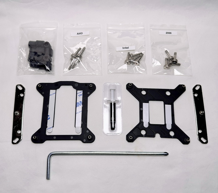 配件盒的內容物除了CPU所需要背板,各CPU所需要螺絲也分別包裝標註,還有散熱膏及一定要用的長螺絲起子。