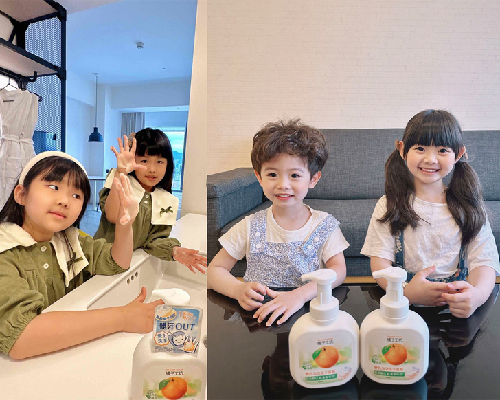 由於孩童的肌膚稚嫩,較成人來得脆弱及敏感,不少父母會挑選孩童專用的洗手產品,來防止小朋友使用後肌膚過度乾澀,或是沖不乾淨、化學物質殘留在手部而不小心吃下肚!一名時尚媽咪小桃分享,最擔心孩子下課返家不洗手就拿東西吃,自從試用了橘子工坊的變色洗手慕斯後,能有效引導小朋友養成洗手習慣、並享受洗手過程的樂趣。