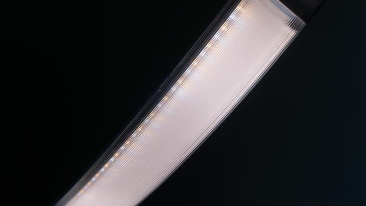 看到燈具的照明面,上方有著一排的 LED 燈珠,搭配柔光板,提升燈光均勻度與避免直視刺眼的問題。