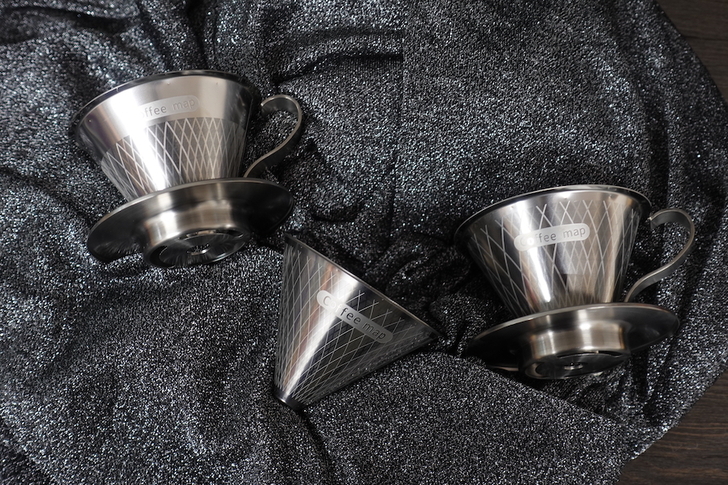 Coffee Map的手沖咖啡器具設計獨特,並在台灣和大陸都取得多項專利,其中最受矚目的是蝕刻金屬濾網,相較於一般的濾紙,金屬濾網不僅可重複使用,還能夠萃取出更多咖啡油脂、提升風味,提供更豐富的口感和層次感。