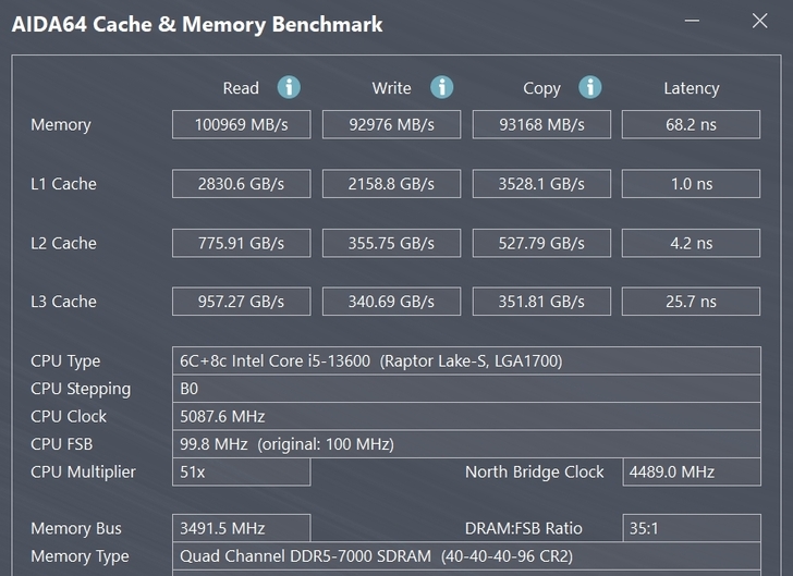 AIDA64 記憶體頻寬測試