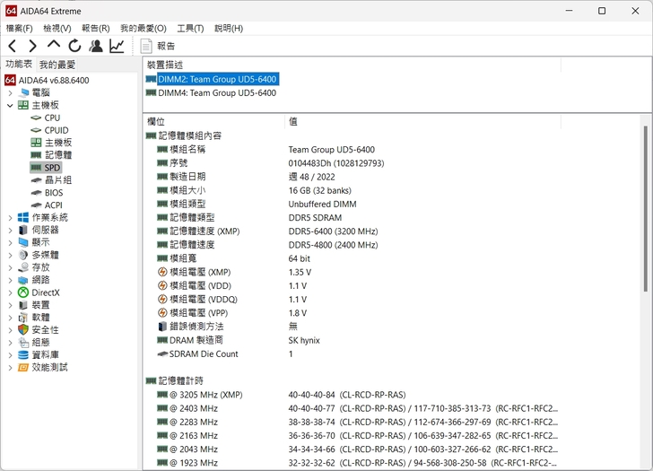 參數 6400MT/s 版本是 CL40