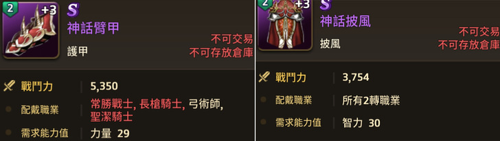 有些裝備有限制力量、敏捷、智力需求幾點才能穿