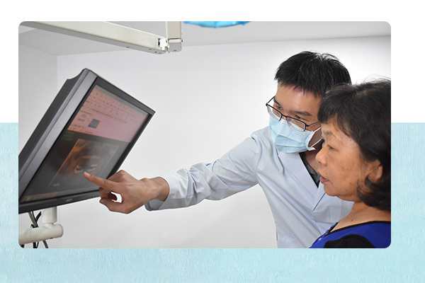 陳奕安醫師有一點讓我們非常放心,幫媽媽做口腔清潔時會邊仔細檢查口腔狀況
