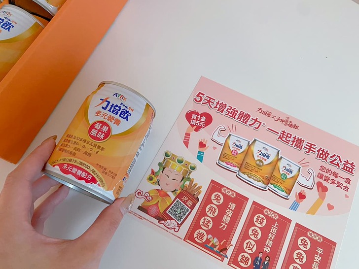品牌經理表示,今年力增飲特別與大甲鎮瀾宮媽祖聯名推出禮盒,一起用優質的產品守護大家的健康。聯名禮盒印有媽祖肖像logo,既可以作為拜拜供品,也可以作為探病伴手禮,更可以讓全家大小喝了都平安。另外只要購買一盒禮盒,力增飲就會捐出$5元給慈善機構,希望能夠攜手民眾共同打造健康,同時創造社會價值。力增飲與媽祖聯名,不僅是希望讓大家更加關注身體健康,更是民眾母親節送給媽媽最佳的營養禮物選擇。更多詳情可參考官網了解https://www.affixhealth.com/。