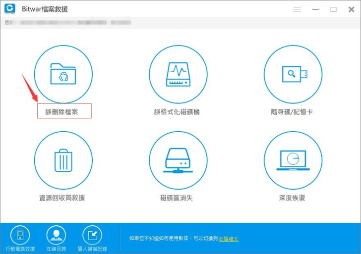 啟動安裝好的Bitwar Data Recovery程式,當你想檢索意外刪除的檔案,請在標準模式下,選擇"誤刪除檔案"救援。如果檔案之前存儲在外接式儲存裝置,您可以選中"隨身碟/記憶卡"模式來進行救援。