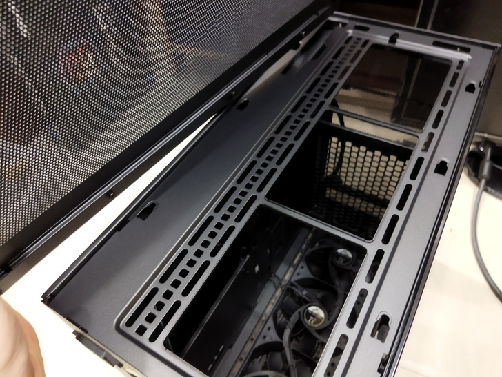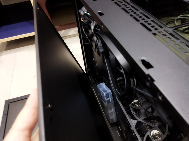 安裝硬碟和SSD的地方,CMT580在前方IO接線附近設計了一個3.5HDD的安裝位置,和之前某大大開箱說的一樣,要稍微理一下線材才能將硬碟裝上