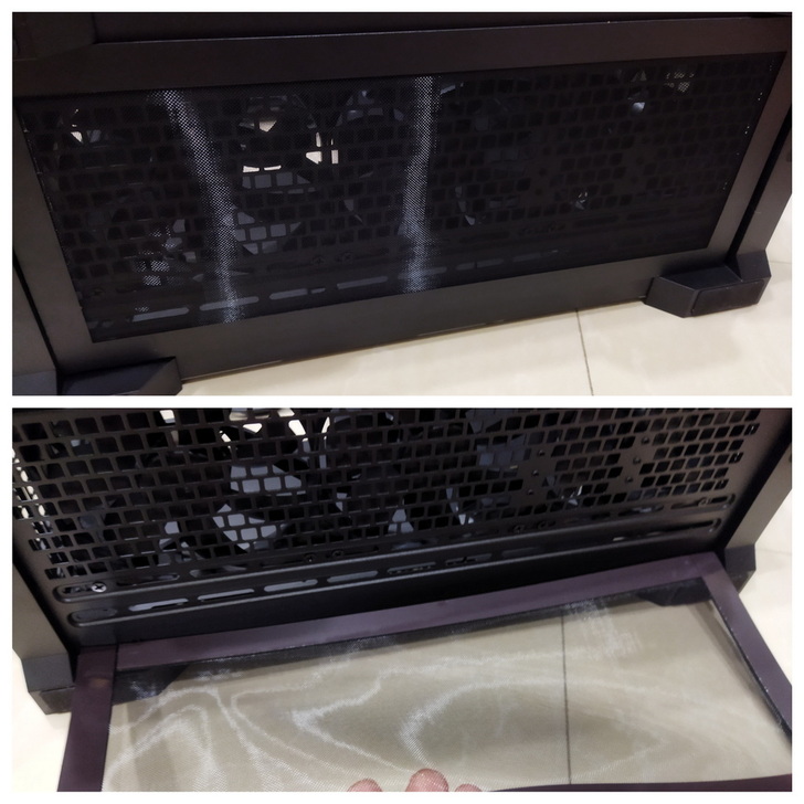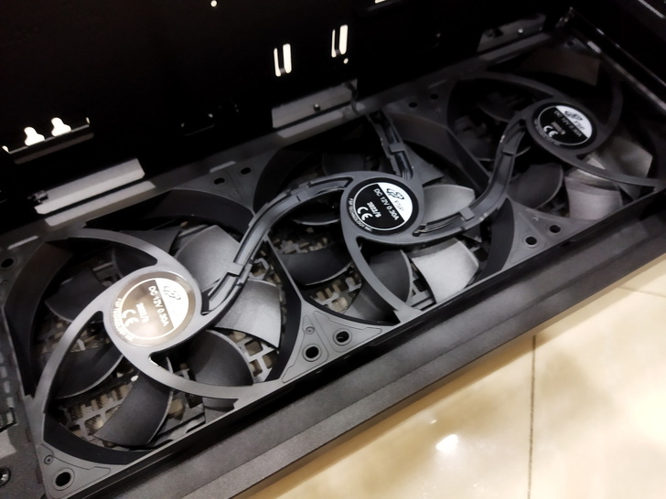 底部的風扇,原本以為是三顆風扇,因為安裝主機板和一些插線,將它暫時拆下來時才發現它是3個風扇一整片 @@”