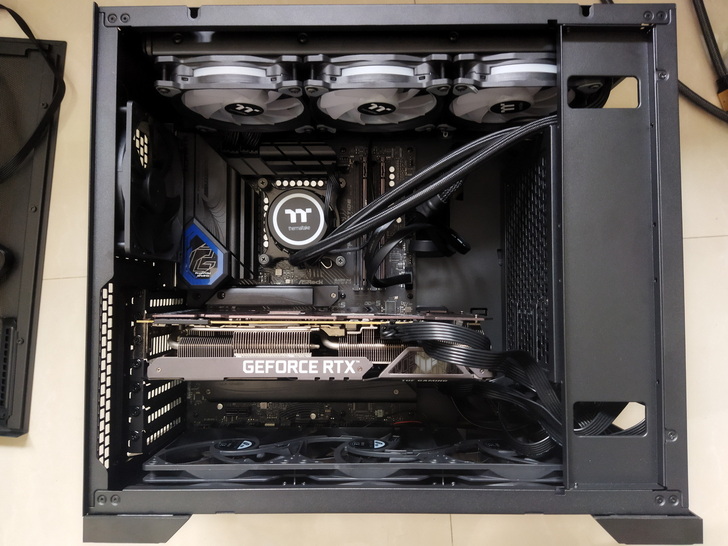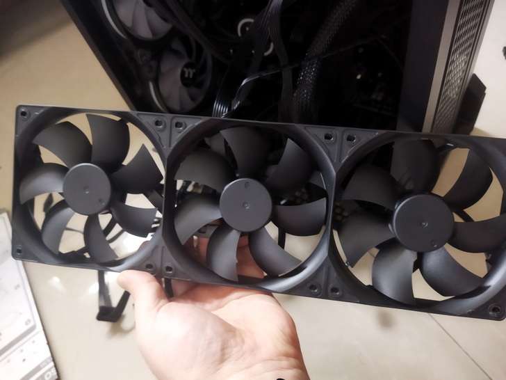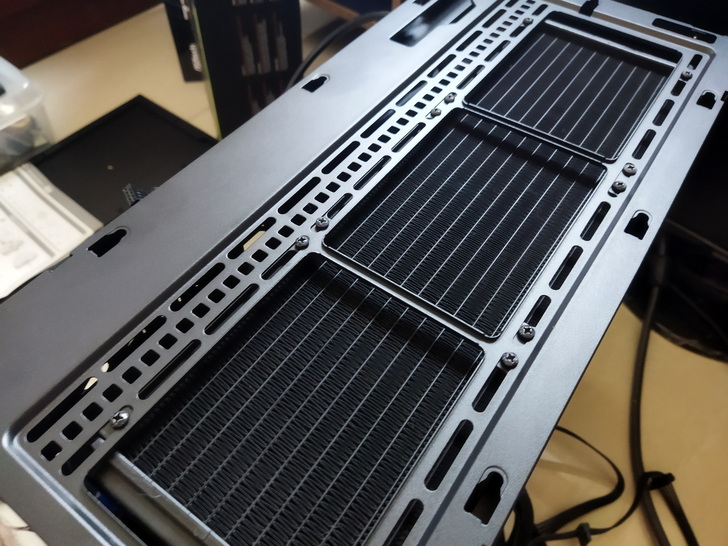 電源裝好就來裝360水冷,把水冷裝在上方,原本有考慮安裝在下方,但覺得有附風扇就先裝著吧,日後有機會再試看看裝下方(應該也懶得換了)