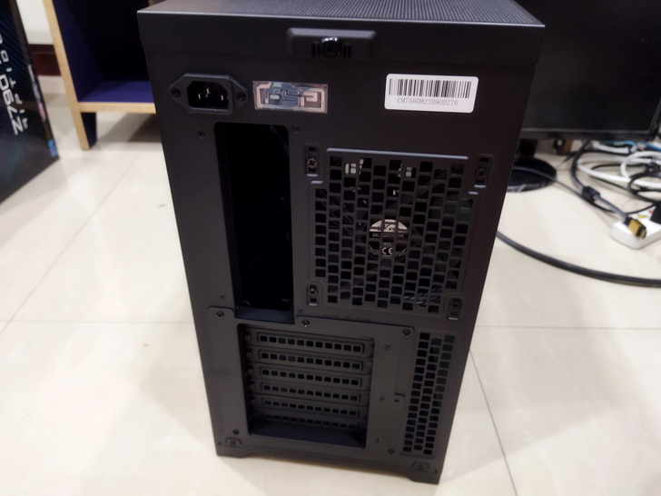 背部長這樣,可以看到有個電源接頭,表示內部電源供應器的安裝會經過轉接