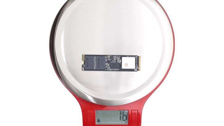 ADATA XPG SX8200 Pro 不含散熱片的話是 7.6g。另外也有秤散熱片重量為 1.6g,加上去總體重量會是 9.2g。