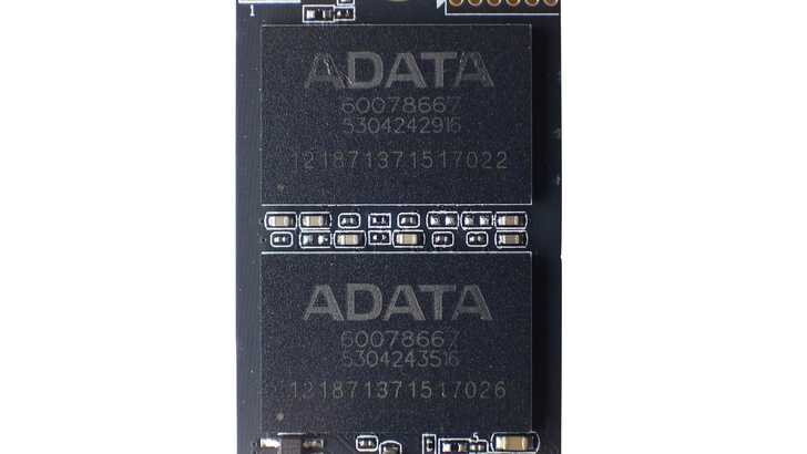 翻到正面,有一顆主控晶片、一顆電源管理 IC、一顆 DRAM 和兩顆 NAND Flash。背面則有一顆 DRAM 和兩顆 NAND Flash。