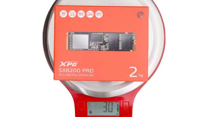 ADATA XPG SX8200 Pro 2TB 盒裝重量為 30.7g。