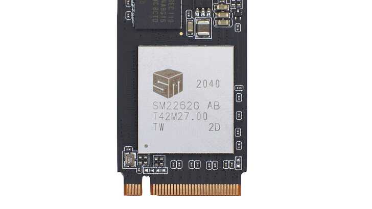 主控晶片為 SMI SM2262G AB,SM2262G AB 是慧榮較早的 NVMe SSD 主控。與後來德 SM2262G BA(EN 版)最大差異在於,SM2262G BA 有較好的循序讀寫以及 4K 隨機讀寫的能力。