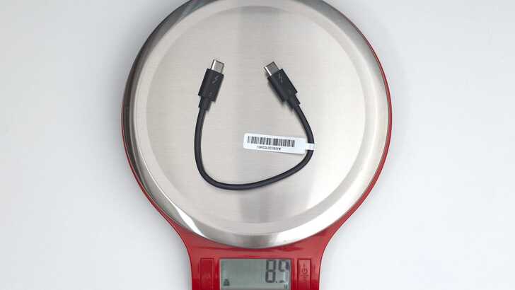 隨附一條超短的 Thunderbolt 3 Cable,重量約 8.9g。這應該是手上數十條 Thunderbolt 3、Thunderbolt 4 認證線中最短的,對於攜帶上會方便不少。