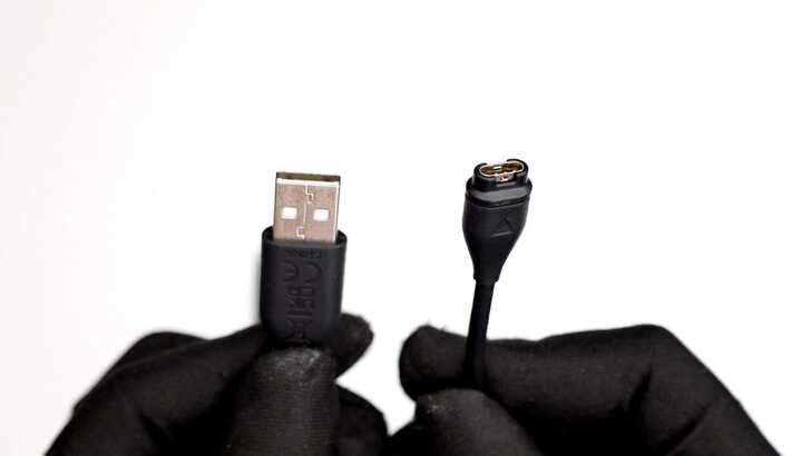 Venu Sq 2 沒有無線充電功能,且充電頭是特規的接頭,原廠隨附的充電傳輸線千萬別弄丟。代價不便宜,官網標示這條價格 $840。在資料傳輸上,官方表示手錶使用的是自家開發的作業系統,實際連接到 Mac,發現可與 Android File Transfer App 相容使用。