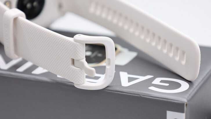 隨附的錶帶為矽膠材質,親膚舒適。原本擔心矽膠白色容易髒,不過實際使用一個多月後,即便是大汗淋灕或沾上污漬,都可以水洗清除味道和痕跡,耐用性比預期高。