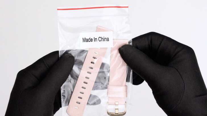 打開紙盒包裝後,錶帶是用夾鏈袋包裝,上面有標籤寫著 Made In China。