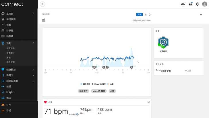 另一個我覺得 Garmin Connect(Web)的應用之處,可以將 Garmin 的穿戴式裝置給長輩和孩子使用。以長輩來說,他們只要知道這個手錶有看時間的功能就可以了。對晚輩來說,所有兄弟姐妹都可以透過 Garmin Connect 的分享功能看到長輩的身體狀況、運動情況。甚至陪老人家看門診,還可以直接用平板、筆電開數據和圖表給醫生參考。而對有孩童的家庭來說,父母可以透過平台掌握孩子的動向和活動狀態,可能上課打瞌睡都會被記錄 XD 都是滿方便的應用。