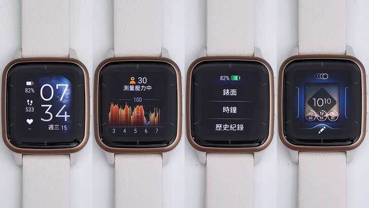 表面可以自訂設定顯示的資訊,包括日期、時間、電量、步數、心率、天氣、方位、跑步距離、騎車距離……等,資訊提供量非常充足。在手錶上的設定中。