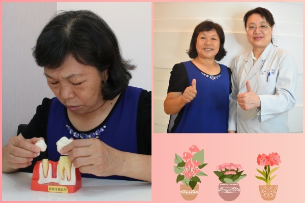 評估完成後護士還很有耐心的教導媽媽正確刷牙方式,拿出了植牙模具,讓媽媽更加了解植牙過程,不過看起來媽媽比較像在玩積木呢~回家前還堅持要跟吳醫師拍照XDD