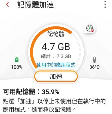 並且可以使用記憶體加速功能,用以停止未使用但是還在執行中的應用程式!