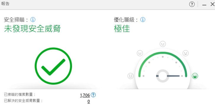 按下掃描之後,就會開始把全部的相關項目,大致上都掃上一遍,然後,會產出一個掃描結果的總體檢報告!