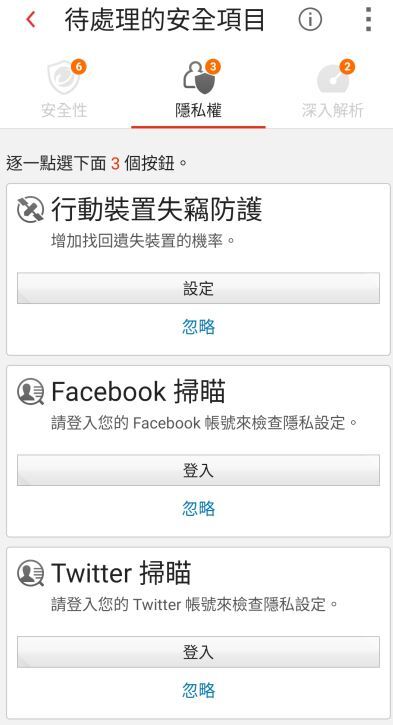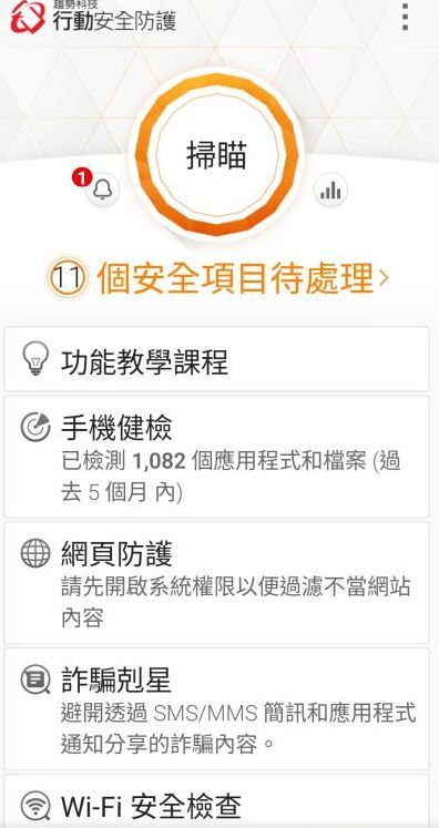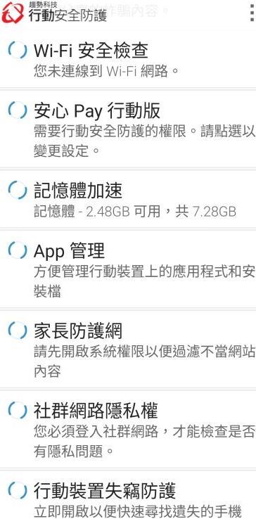 一開始,可以選擇掃描手機的上網相關的程式及設定!
