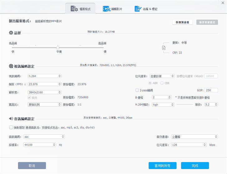 支援高質量視訊壓縮,完美保留原片畫面品質。