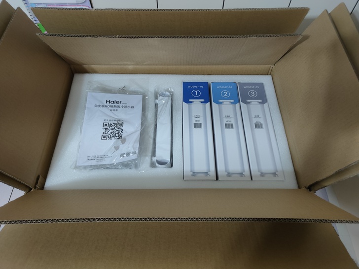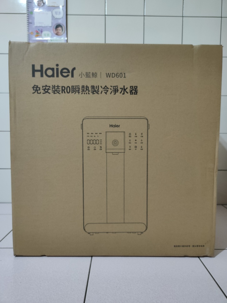 ▲外箱很簡樸,WD601是Haier海爾家電產品之一,當然Haier海爾產品線非常廣泛,淨水器也為其熱門產品之一。特別提醒,Haier海爾產品種類繁多,台灣目前視產品不同有不同的代理商,以瞬熱製冷淨水器來說,代理商為創家,若想享有在台售後服務,要特別留意。
