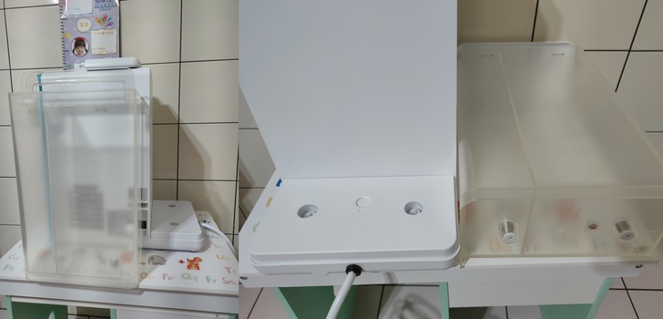 ▲WD601正面就是出水口,前方透明的部份即為富氫水箱。