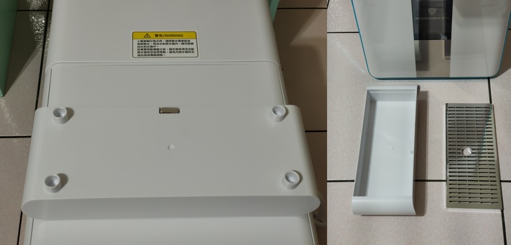 ▲底部主要是多個防滑設計,也是長期不用時,排空餘水的出口。