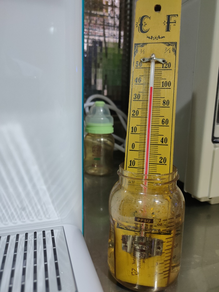 ▲接著來極限測試一下,立馬換上泡奶模式來杯40度C的泡奶水,經過18度C考驗後的溫度計,立刻升至約38度C,看來不止水量可以,溫度也是很OK。有嫩嬰的家庭都知道,醫生建議泡奶溫度是70度C,可以有2次殺菌的效果,WD601除了70度C外,為何還會有40度C呢?主要考量當嫩嬰逐漸長大,免疫抵抗力愈漸提高,奶粉開始加入添加物,而有些不適合高溫(如益生菌),這時就會建議使用40度C的溫度,避免把這些添加物殺光了。當然,使用前,建議還是先詢問過醫師,看自已的小孩適不適合喔。若是大人泡奶就沒個疑慮了。